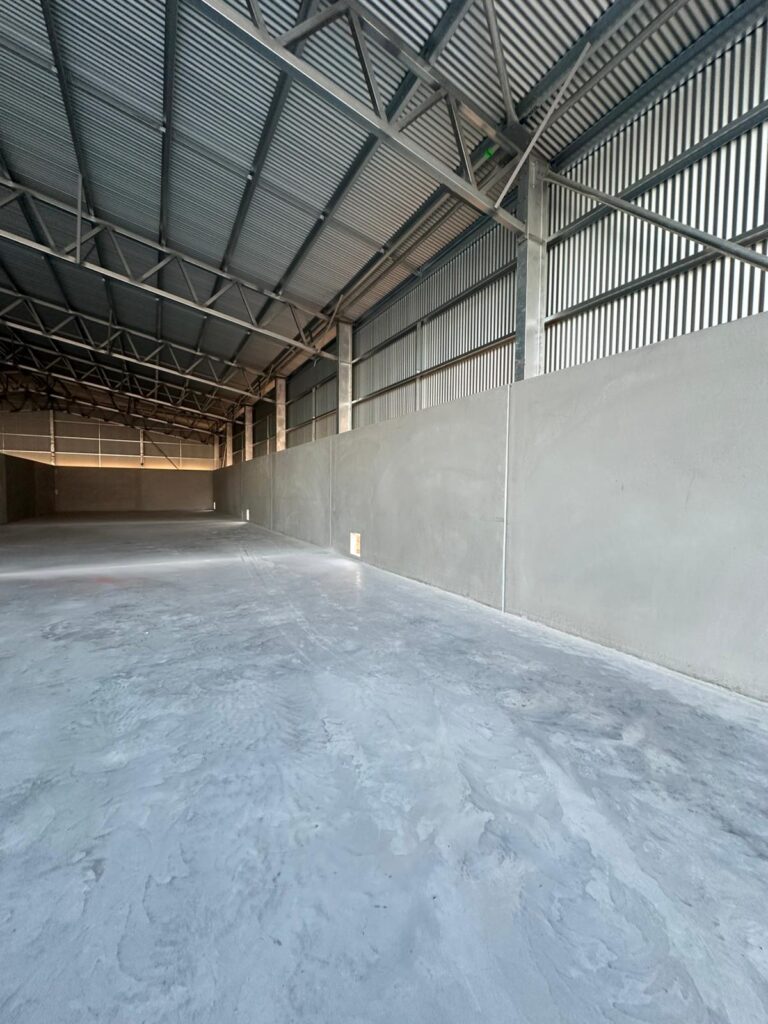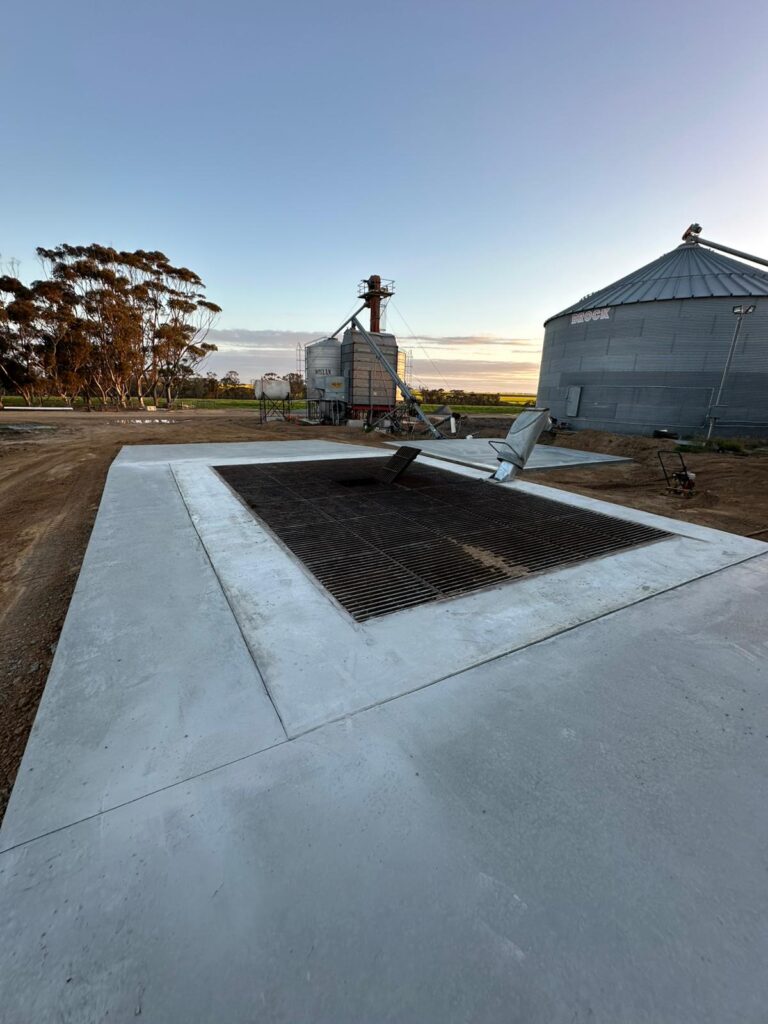 Cast-Tech Group completed the full onsite construction of a 36m x 24m shed floor, 10m x 12m apron and all associated thickenings using N32 concrete and onsite batching. The works included forming, placing and mechanically finishing all slabs, installing auger chute openings and managing all labour, machinery, mobilisation and concrete supply.